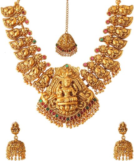 The set includes a matching pair of earrings to complete your look, and its high-quality gold-plated finish ensures a rich, luxurious appearance without the heavy price tag. Whether worn for weddings, receptions, or cultural events, this haram is designed to make a lasting impression.
